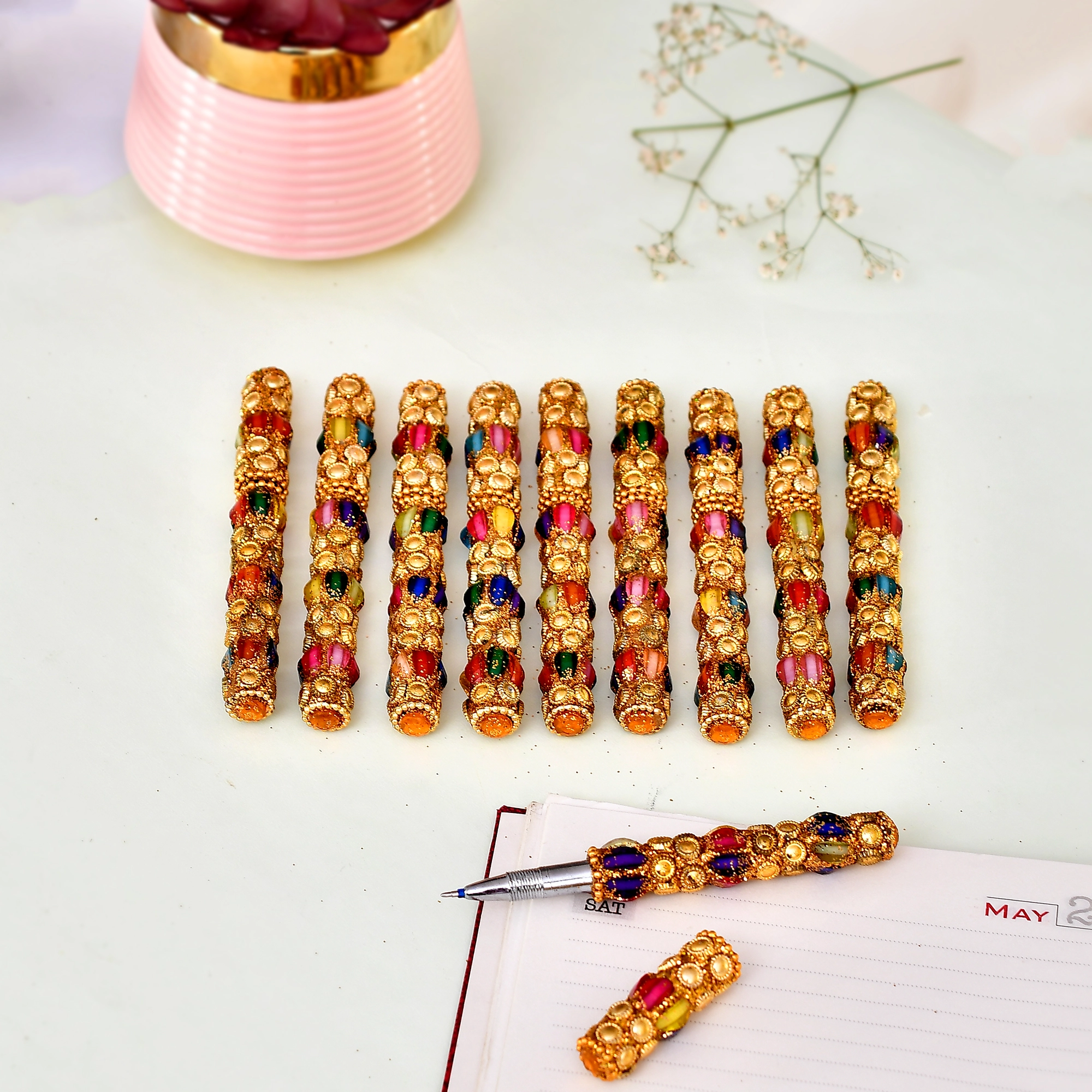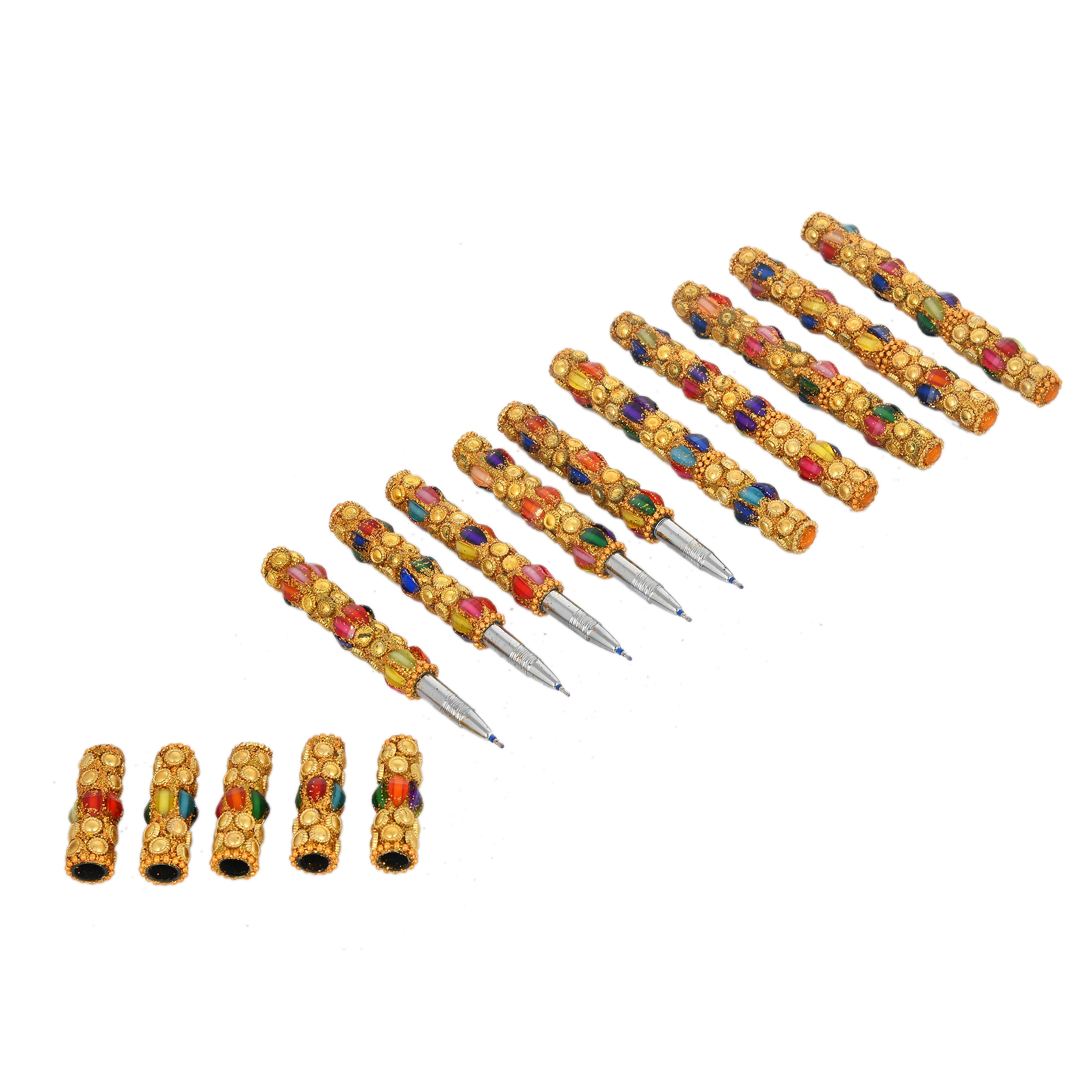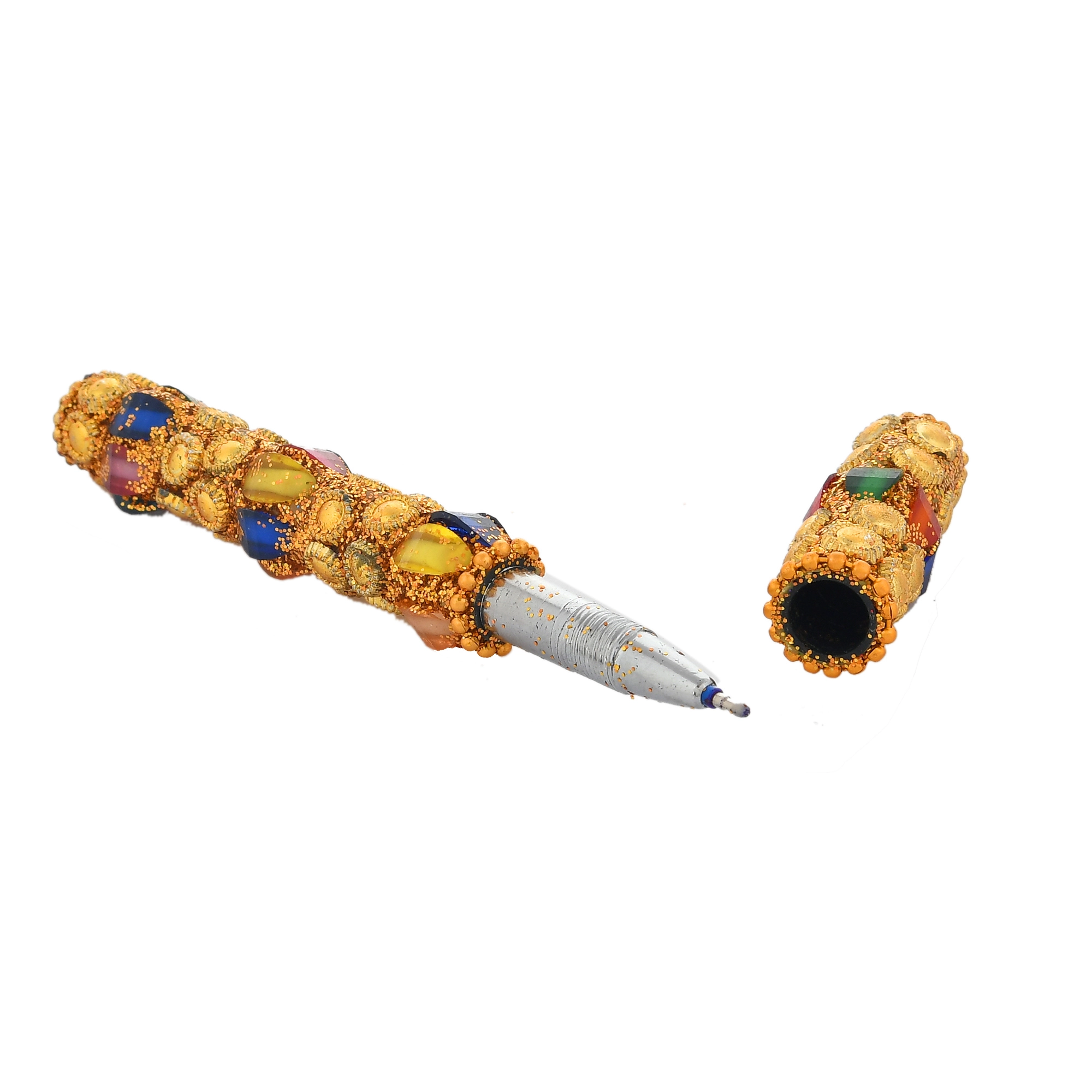 - Handcrafted Design:?Each pen is carefully crafted by skilled artisans, featuring detailed lakh beadwork and reflective mirror accents that showcase traditional Indian artistry.