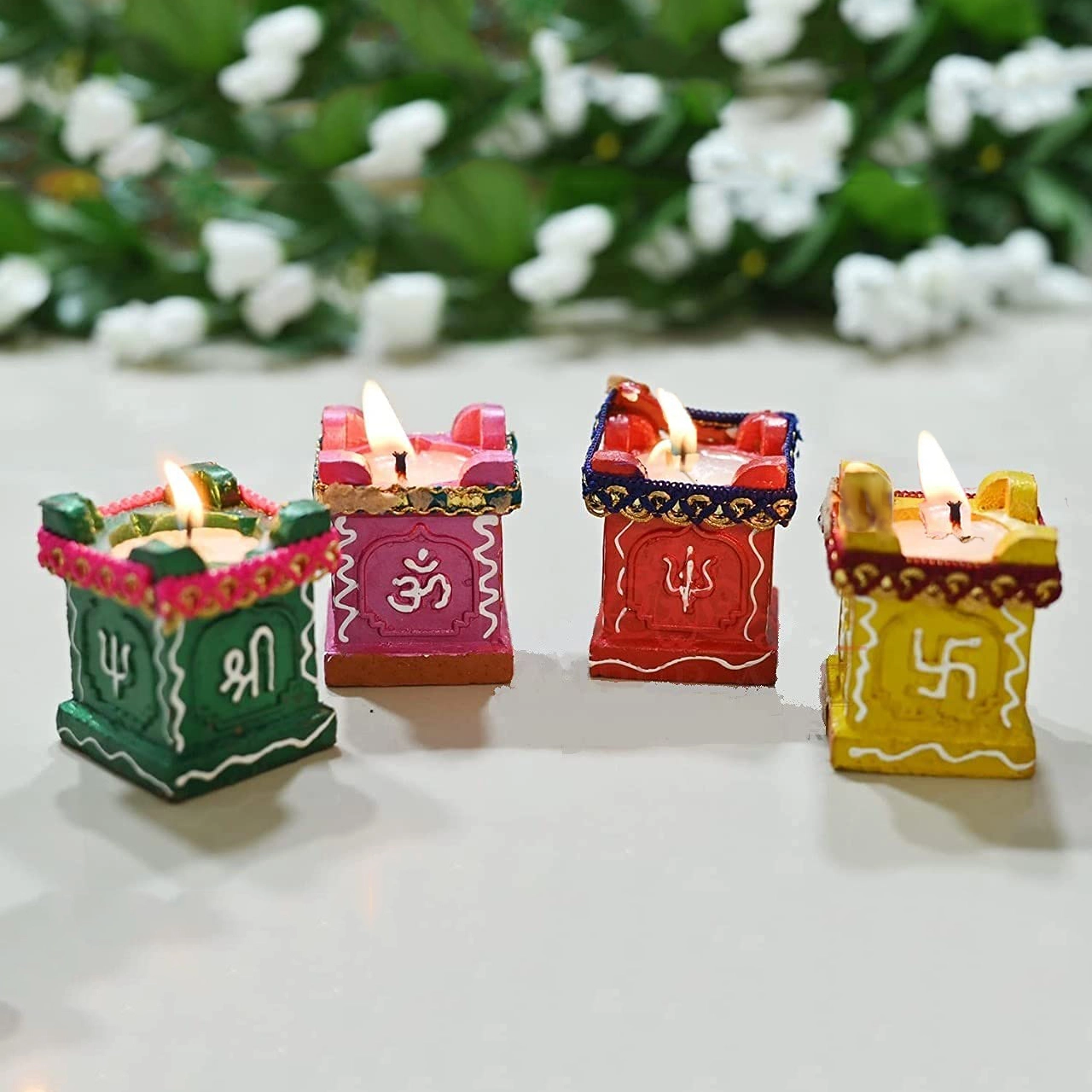 Tulsi Diya for Puja Terracotta Handpainted Deepak / Candle Stand / Candle Holder for Home Decor Diwali Decoration Items & Diwali Gifts