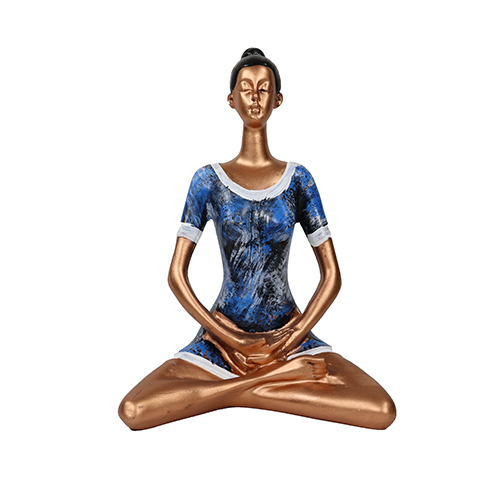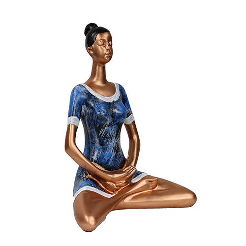 CRAFTAM Yoga Lady Statue – Poly Resin Decorative Statue Figurine Showpiece for Home D?cor Table Top Living Room Gift Item (Blue & Golden)